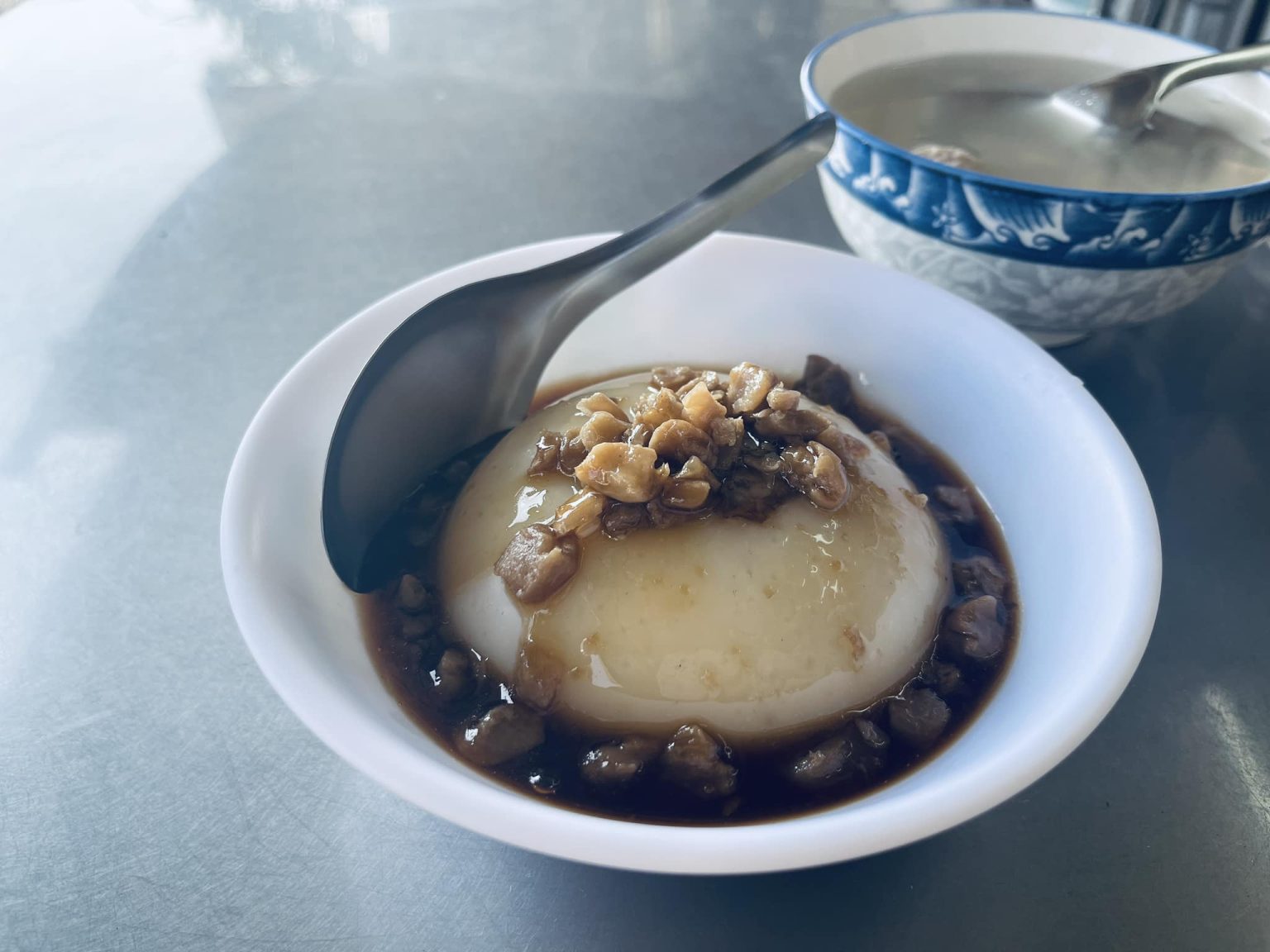 熱呼呼軟綿的碗粿拌上不死鹹的醬汁加點老闆自製辣醬,配上切小塊撒在上方有脆度的菜脯~